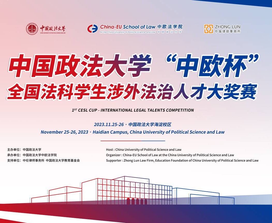 11月25日-26日,第一届中国政法大学“中欧杯”全国法科学生涉外法治人才大奖赛在我校海淀校区举行。本次大赛由中国政法大学主办,中国政法大学中欧法学院承办,同时得到中伦律师事务所、中国政法大学教育基金会的支持。本次大赛是中欧法学院举办的庆祝建院十五周年系列活动之一。题图:辛雷责任编辑:马安娜往期回顾:中国政法大学“中欧杯”全国法科学生涉外法治人才大奖赛公告(第1号)中国政法大学“中欧杯”全国法科学生涉... >>>