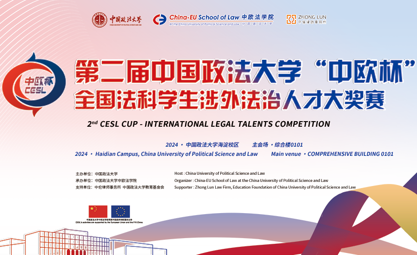 由中国政法大学主办,中国政法大学中欧法学院承办,中伦律师事务所、中国政法大学教育基金会支持的第二届中国政法大学“中欧杯”全国法科学生涉外法治人才大奖赛的复赛将于2024年5月25日-26日在中国政法大学海淀校区举行。大赛采用涉外法律英语演讲、模拟商事仲裁庭、模拟涉外谈判、模拟企业合规方案等比赛形式,来考查优秀的涉外法治人才所应具备的不同技能。“中欧杯”大赛是校际法学教育交流交融的新纽带。59名复赛选手来... >>>