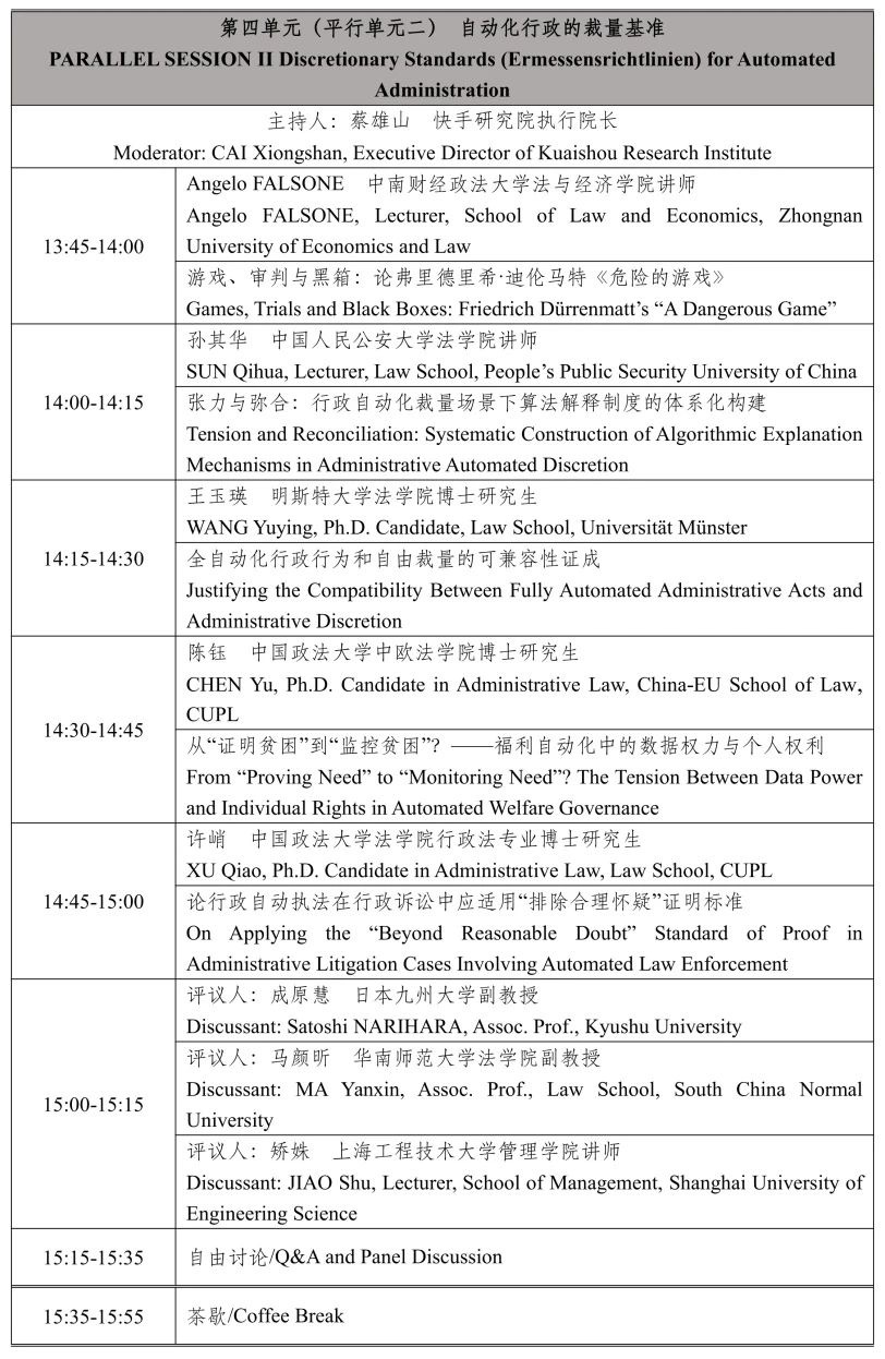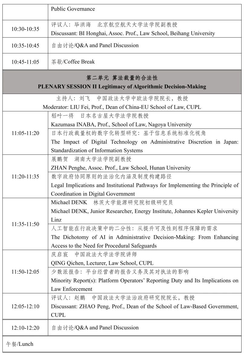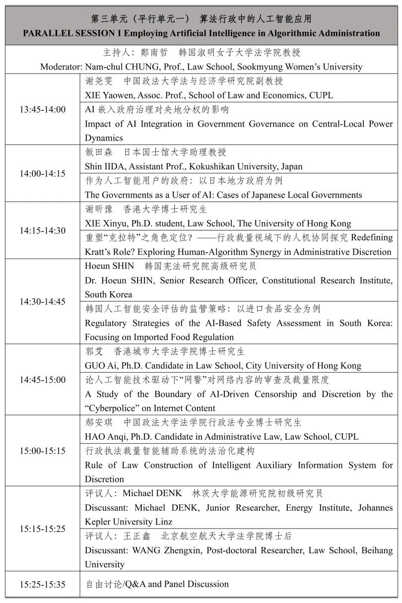 飯田森是国士馆大学(日本)的行政法助理教授。他于2023年从中央大学研究生院毕业,并于2024年起在国士馆大学担任助理教授。他的研究聚焦于公共行政中数字技术与人工智能的运用,特别关注德国《联邦行政程序法》第35a条所规定的“全自动行政行为”(fully automatic administrative actions)。近期,他的研究扩展至20世纪50年代至70年代德国行政中机器使用的历史背景,并探讨在行政行为由人执行、由人机共同执行以及由机器单独执行三种情形下行政程序的规范问题。在本次会议中,他将报告日本地方政府在引入(生成式)人工智能和制定相关条例方面的现状。