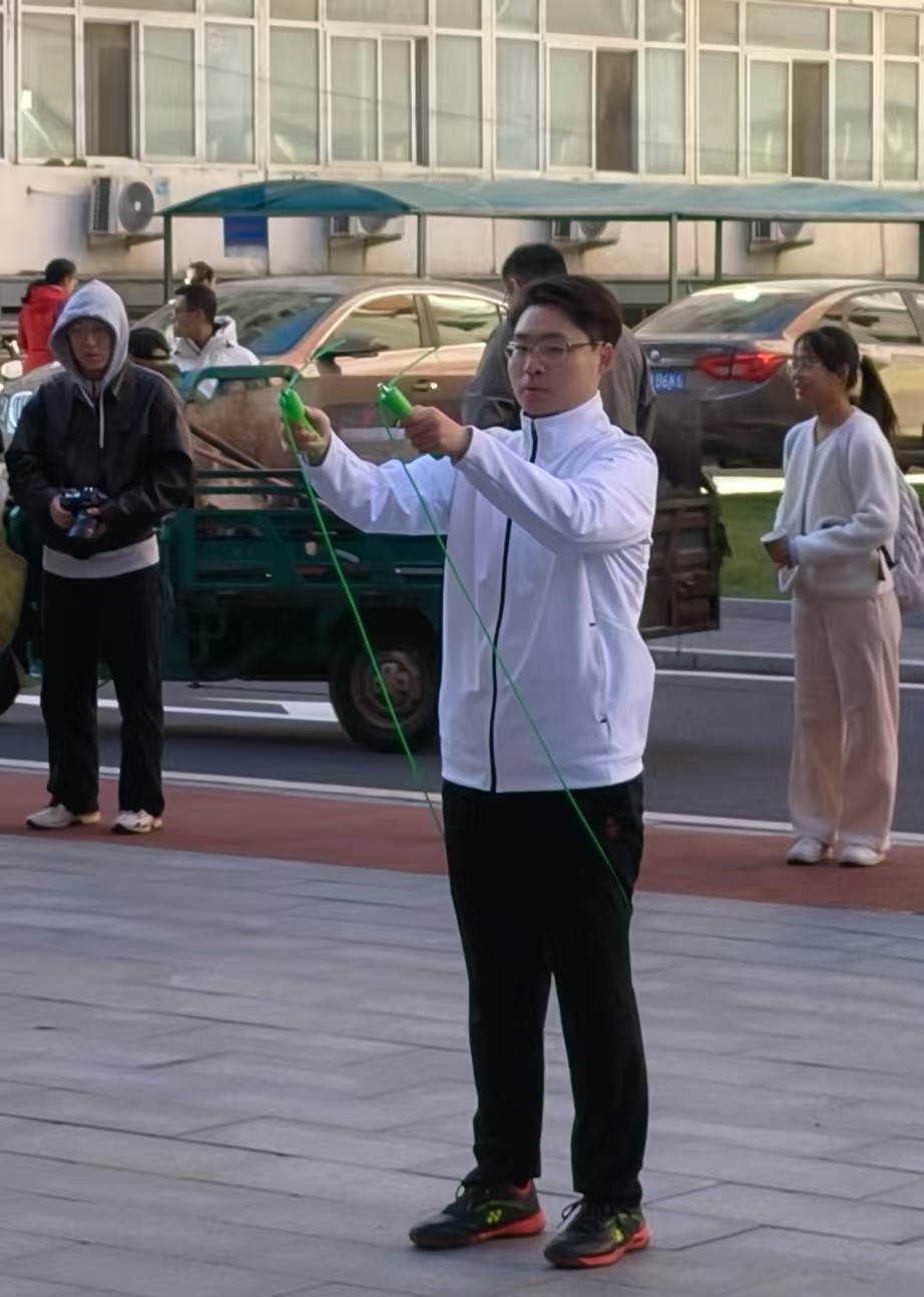 众多单人项目里,王启明的男子单人踢毽子赛是当日上午亮点。他赛前练节奏、找抗风技巧,力求好状态。比赛时,他双脚交替,毽子在脚尖膝盖间穿梭;遇干扰,他调脚步、转手腕接稳,现场加油声不断。最终,他斩获第四名,为中欧法学院拿下运动会单项荣誉。