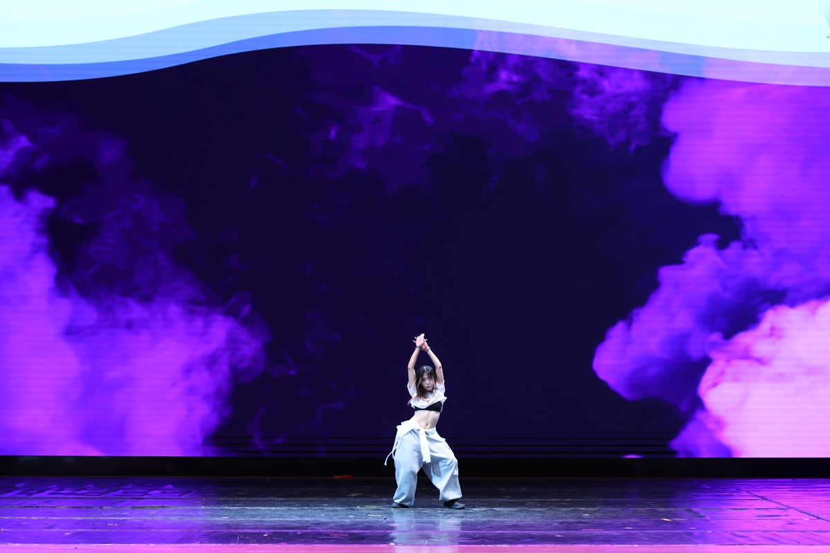 第三篇章“踏潮行”满含对未来的期许:吕秋子君带来爵士舞串烧,利落的动作和精准的节奏带动了全场,灯光下展现出十足的活力;远在汉堡的2024级双硕士通过视频送上寄语,分享了留学中的成长与感悟,为新生送上了温暖和鼓励。