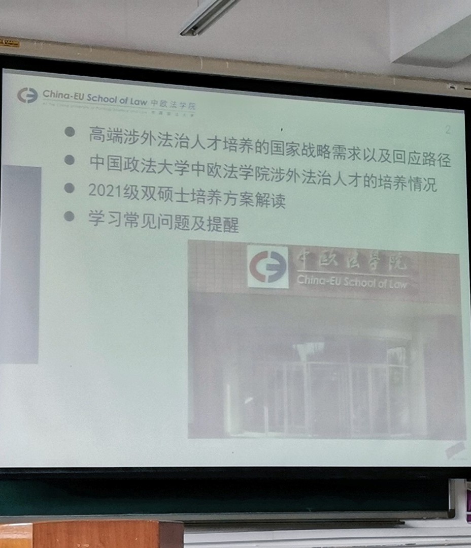 新学期伊始,为帮助2021级新生迅速适应未来的学习生活并作出相应的合理规划,中欧法学院举办了“2021级双硕士培养方案解读会”。会上,马安娜老师与吴素跃老师分别从“高端涉外法治人才培养的国家战略需求以及回应路径”、“中国政法大学中欧法学院涉外法治人才的培养情况”、“2021级双硕士培养方案”、“学习常见问题及提醒”四个方面做出了介绍和讲解。