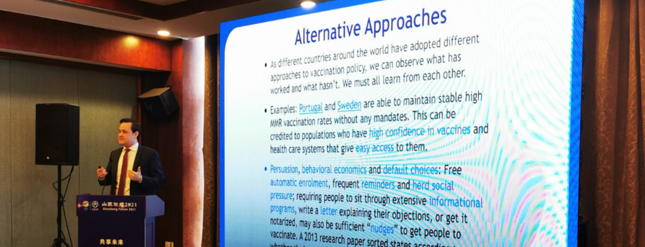 Silley院长在演讲中展示了其对不同国家地区疫苗相关立法、行政命令和司法诉讼的调查结果并进行了详尽的法律分析。此外,他还提到一些国家没有推行疫苗接种强制措施,但也成功实现了高疫苗接种率。受此启发,Silley院长提出,行为经济学或许可以应用于促进疫苗怀疑论者以及反对疫苗接种的人自愿接种疫苗,成为疫苗接种强制措施的替代方法。