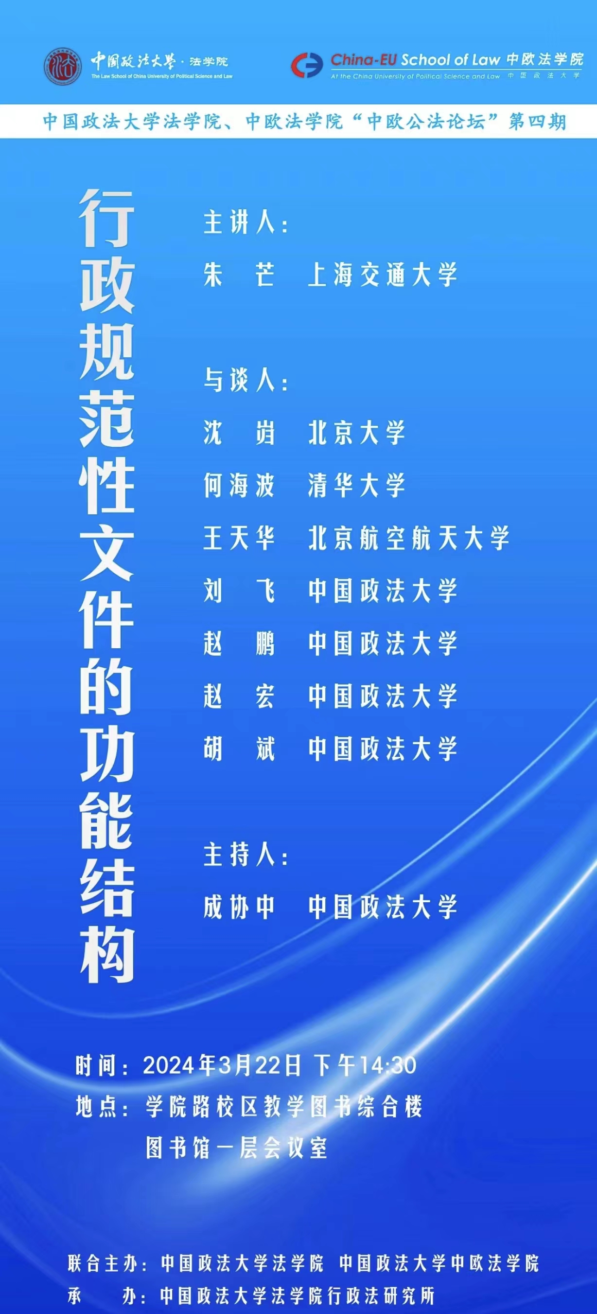 讲座预告 | “中欧公法论坛”第四期:行政规范性文件的功能结构