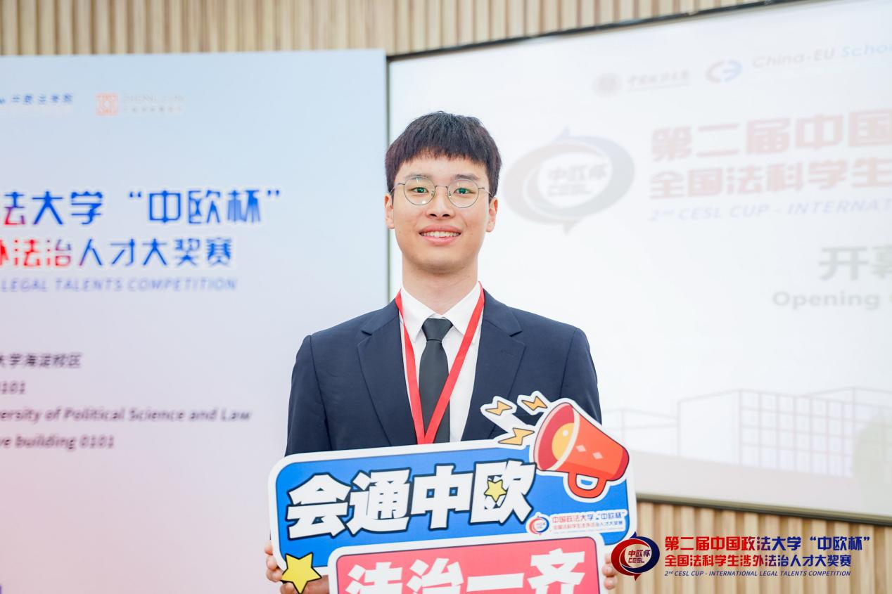 中国政法大学“中欧杯”全国法科学生涉外法治人才大奖赛是中国政法大学在我国涉外法治人才培养领域中首创、面向全国法科学生开放的综合性大奖赛。“中欧杯”大奖赛深入贯彻落实党的二十大精神及习近平总书记关于加强涉外法治专业人才培养的重要指示精神,服务党和国家战略需要,为我国涉外法治人才培养与成长提供一个寓人才培养于全英文法科赛事的开放平台。“第二届‘中欧杯’获奖选手分享”系列,讲述获奖选手的涉外法治人才成长故事,展现比赛风采。