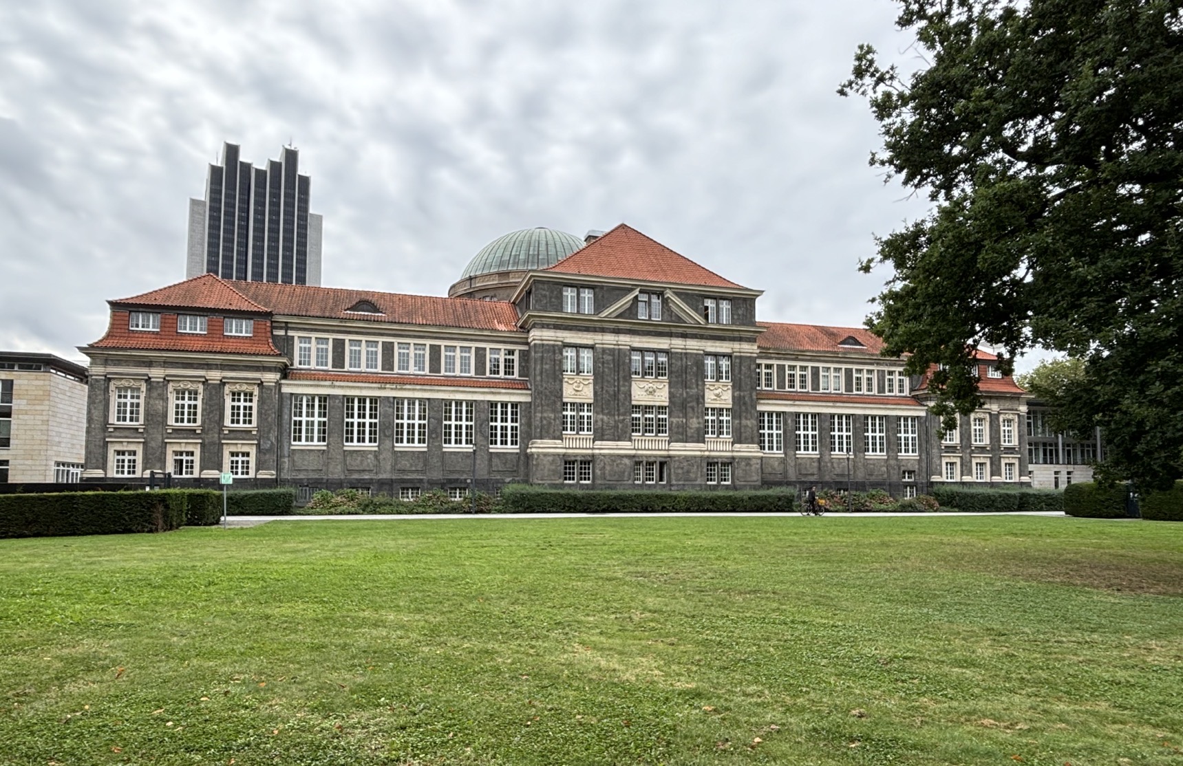 从中国政法大学到汉堡大学,最大的感受就是学校之大和校园的开放。汉堡大学校园是座精心设计的时空装置,复古的中央主楼与玻璃幕墙的现代法学馆形成奇妙对话。每当晴天的午后,校园草坪上躺满晒太阳的人,将汉堡罕有的阳光储存到体内。图书馆的环境优美,灯光明亮,座位宽敞,每个图书馆里都有咖啡馆和面包店。有的同学在图书馆可以花整个下午读十页文献,这种“沉潜式”的学习令人羡慕,而真知往往诞生于这种看似“浪费”的时光褶皱中。放学之后,从学校到易北河岸并不遥远。我们常常邀三两好友沿着码头区散步,直到夜幕降临。我们会经过历史悠久的港口,卖鲱鱼三明治的小摊贩,转过某个街角又遇到前卫的易北爱乐音乐厅。走回家的路上,石板路缝隙里长着蒲公英,时不时蹿出圆滚滚的松鼠。这些场景碎片在暮色中发酵,共同构成了我们独特的汉堡生活回忆。