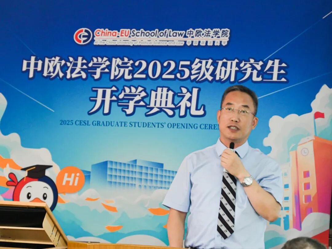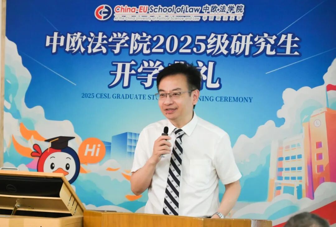 中欧法学院院长兼党委书记刘飞对2025级新生提出多项学习与成长方面的期待,并介绍了学院可提供的各类支持。他希望同学们树立成为高端涉外法治人才的宏大目标,努力提升专业知识和法律英语水平,增强文化包容理解能力。学院将全力为同学们提供教学服务,并在海外学习、竞赛和实习等方面创造机会。刘飞最后寄语大家成长为国之栋梁,通过自身努力获得满意的就业岗位。