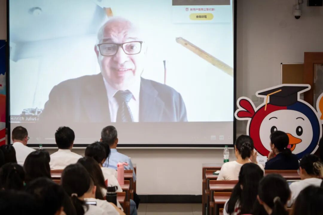 中欧法学院联合管理委员会欧方主席、德国汉堡大学尤翰林教授通过视频方式,对新生的到来表示热烈欢迎,并对双硕士项目进行了详细介绍。该项目学制三年,采取“国内-海外-国内”分段培养模式:第一年在北京夯实中国法律基础并强化法律英语能力;第二年前往欧洲合作院校,修习欧洲法与国际法,同时体验多元文化;第三年返回中国,为就业或深造做好准备。尤翰林希望大家珍惜机遇、学有所成。