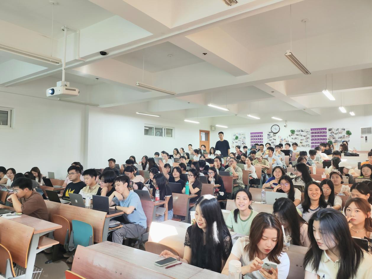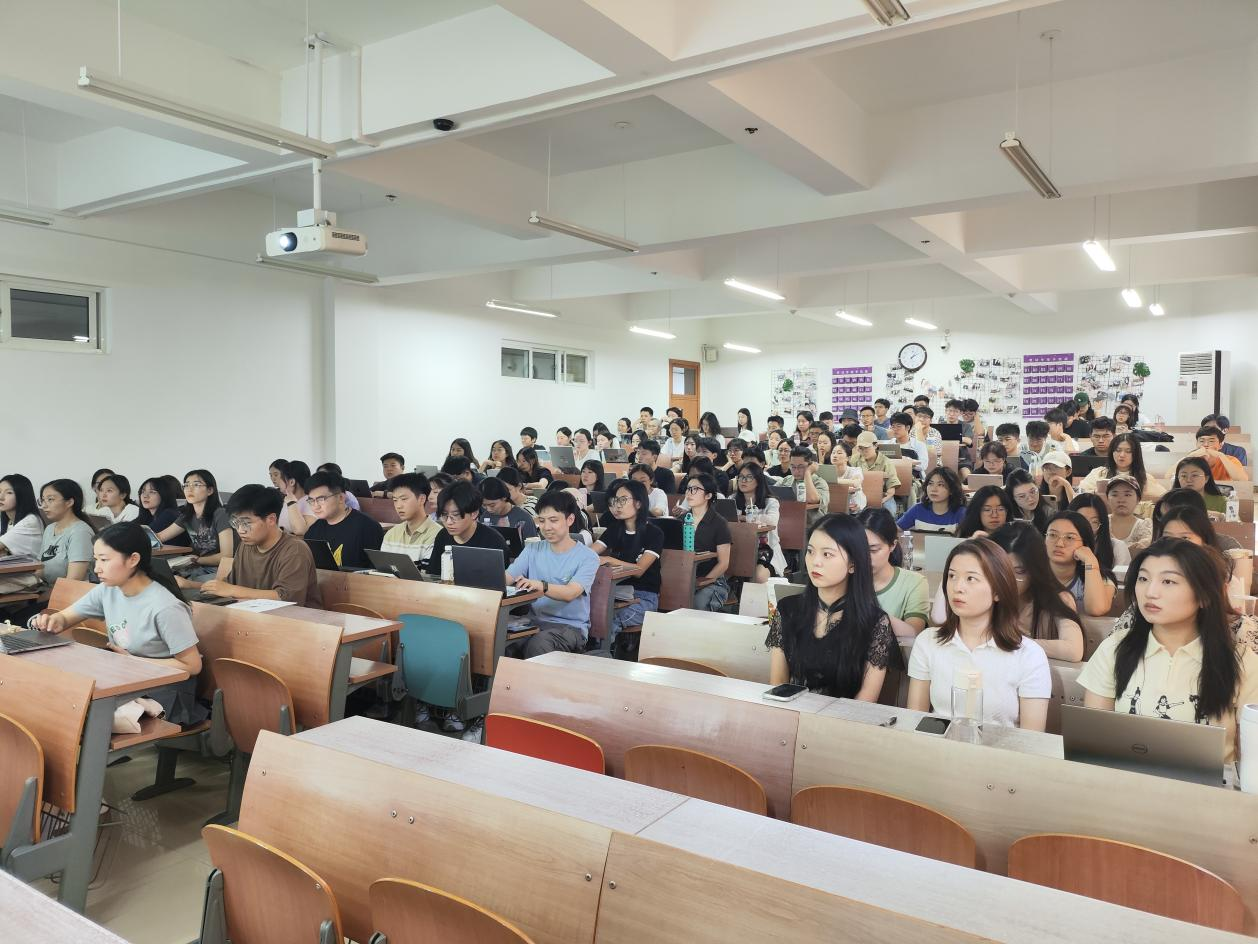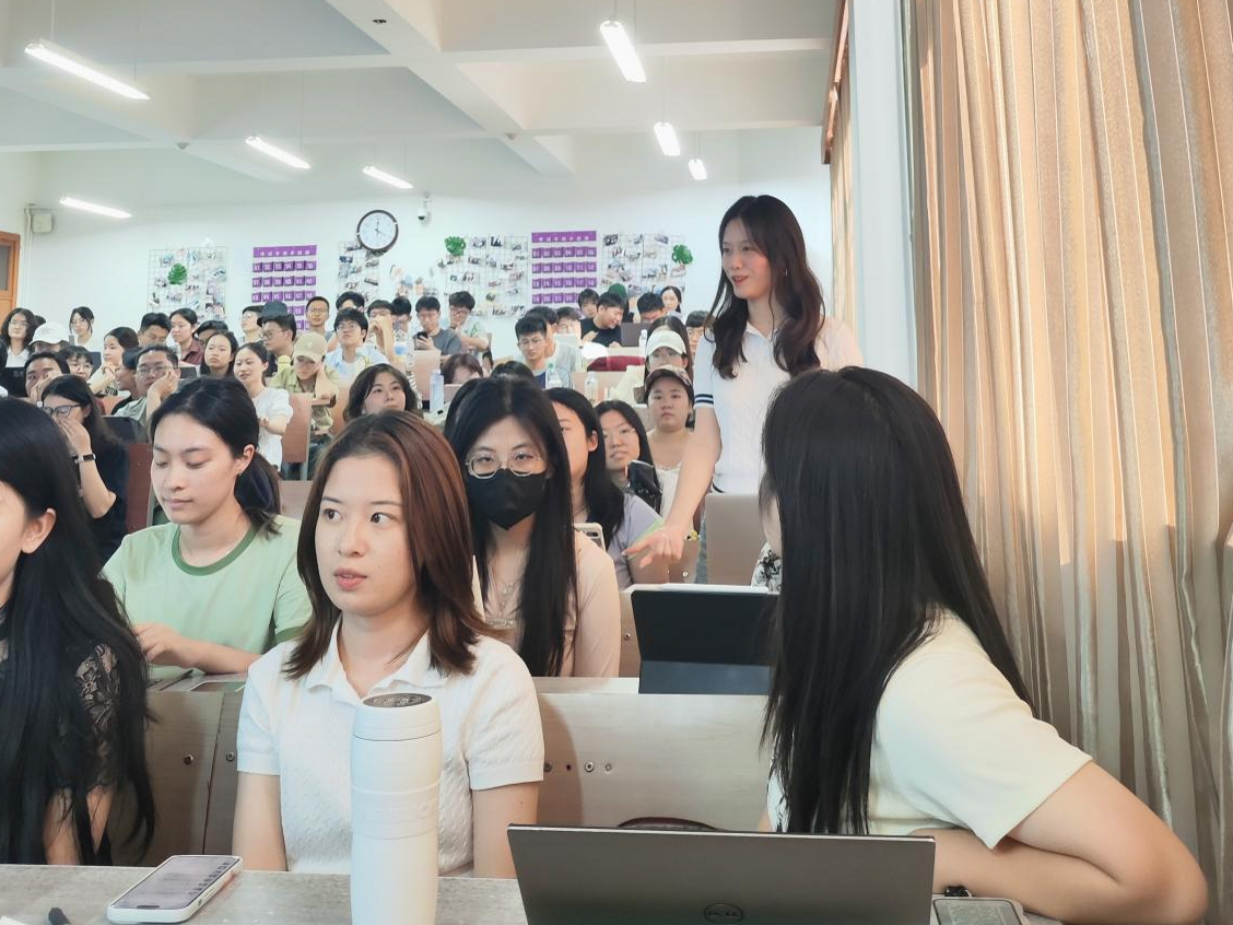 在年级大会上,李晓露老师请2024级双硕士新生依次进行自我介绍,以便迅速认识与了解。同学们的介绍有的短小精悍,有的妙语连珠,李老师认真倾听记录,偶尔加入讨论,现场气氛热烈,掌声雷动。自我介绍完毕后,李老师表达了对新同学的热烈欢迎和美好祝愿。