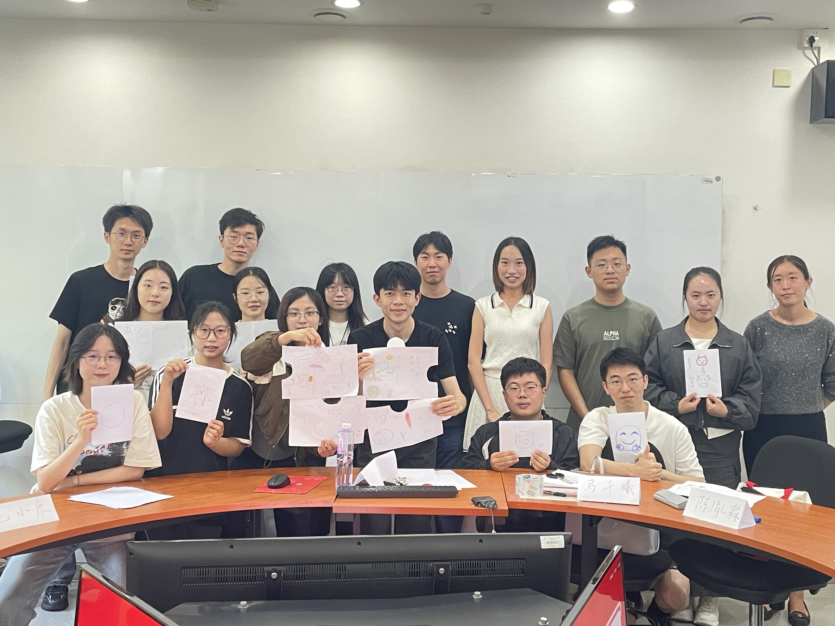 分组主题绘画环节中,两组同学不约而同聚焦“研究生生活印象与憧憬”的主题,拼合后的画作满含对未来的期许,也展现了新生们对适应新阶段的共同关切。