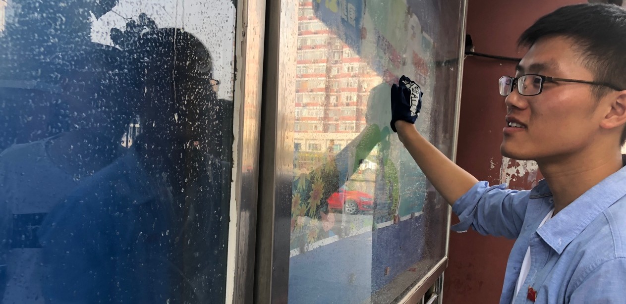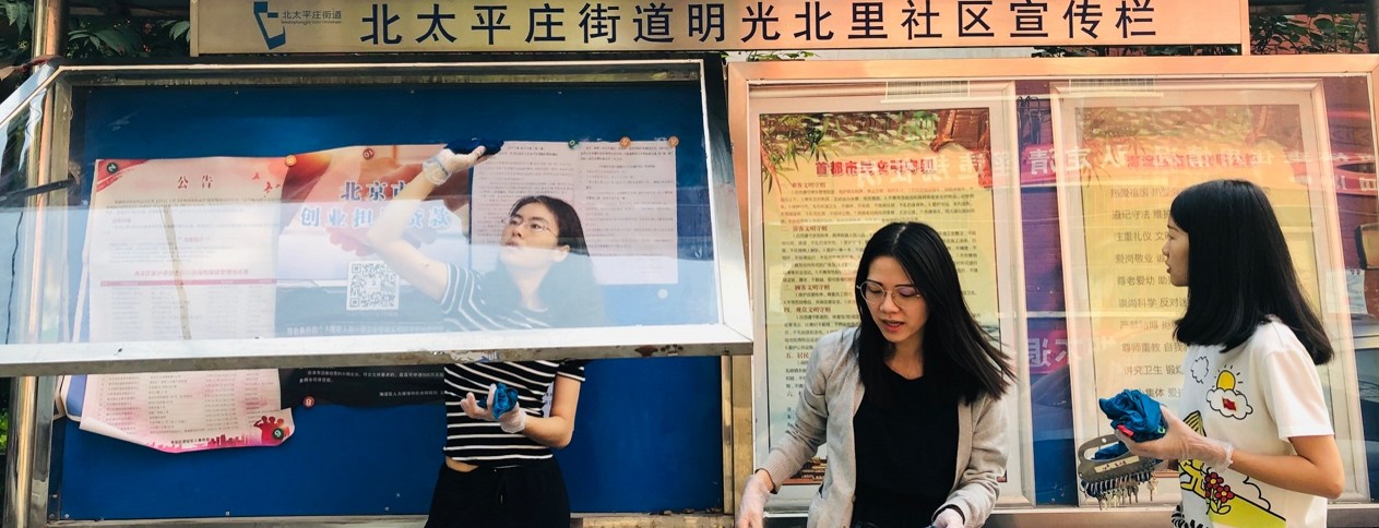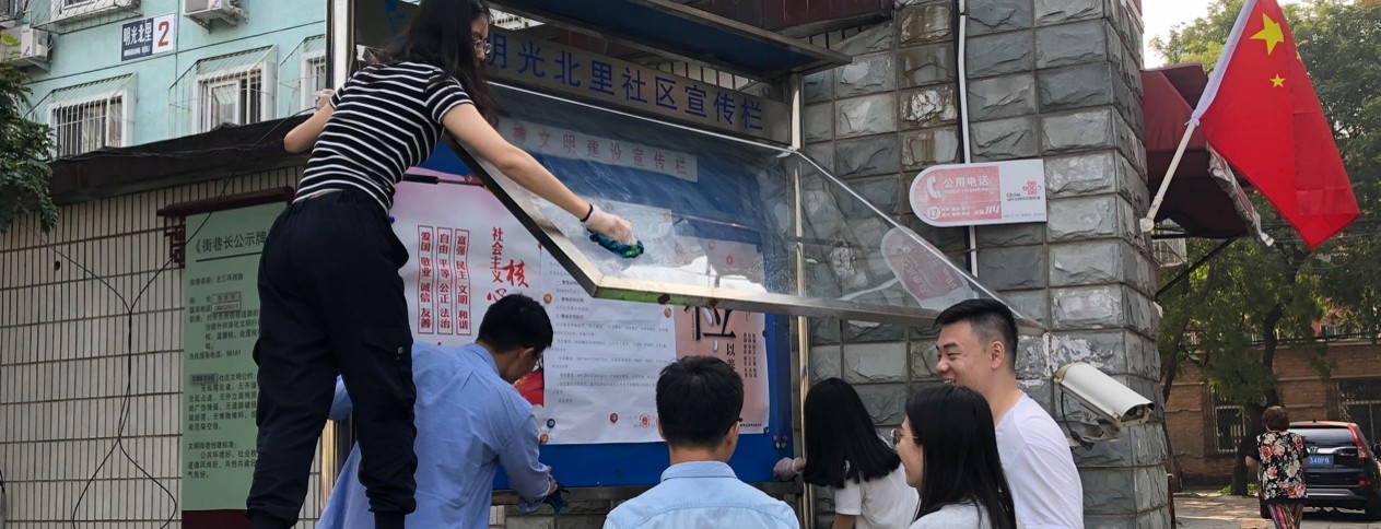 为扎实开展“不忘初心、牢记使命”主题教育,用实际行动践行党员干部的初心和使命。2019年9月28日,中欧1701班党支部在明光北里社区开展了“我和我的祖国”主题党员志愿活动。在明光北里社区周主任的带领下参观了社区办公区,支部成员和社区工作人员交流认识。活动现场支部党员耐心细致地清洁布告栏,2个多小时的时间,7位党员不停歇的清洁了明光北里社区近二十块布告栏。