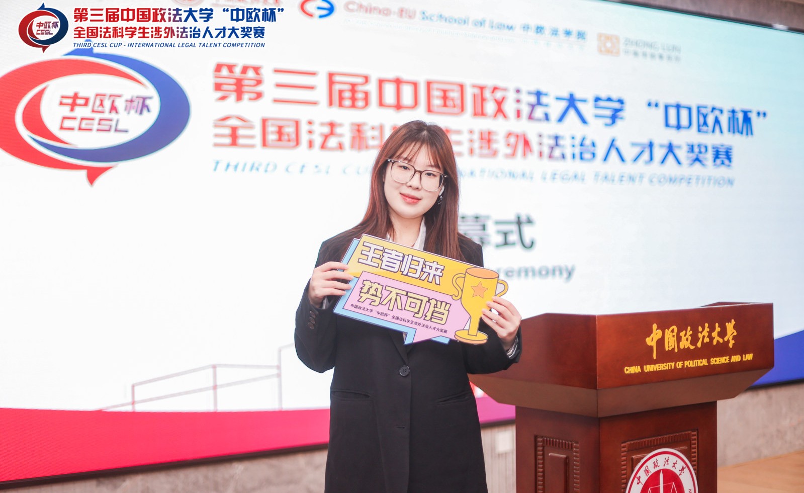 编者按中国政法大学“中欧杯”全国法科学生涉外法治人才大奖赛是中国政法大学在我国涉外法治人才培养领域中首创、面向全国法科学生的综合性大奖赛。“中欧杯”大奖赛深入贯彻落实党的二十大精神和习近平总书记关于加强涉外法治人才培养的重要指示,服务党和国家战略需要,为我国涉外法治人才培养与成长提供一个寓人才培养于全英文法科赛事的开放平台。“第三届‘中欧杯’获奖选手分享”系列,将讲述获奖选手的涉外法治人才成长... >>>