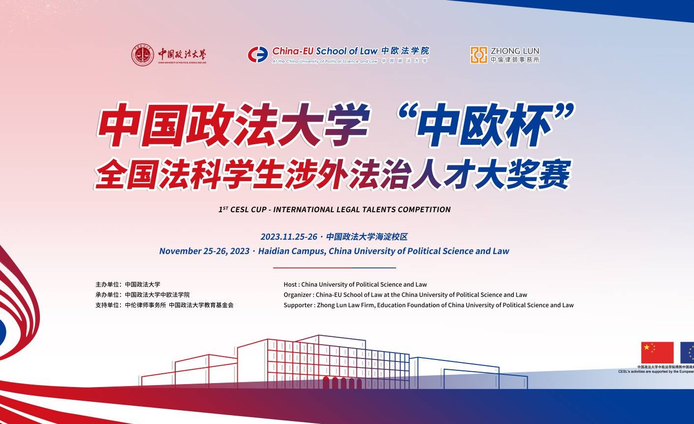 11月25日-26日,第一届中国政法大学“中欧杯”全国法科学生涉外法治人才大奖赛在我校海淀校区举行。本次大赛由中国政法大学主办,中国政法大学中欧法学院承办,同时得到中伦律师事务所、中国政法大学教育基金会的支持。本次大赛是中欧法学院举办的庆祝建院十五周年系列活动之一。题图:辛雷责任编辑:马安娜往期回顾:中国政法大学“中欧杯”全国法科学生涉外法治人才大奖赛公告(第1号)中国政法大学“中欧杯”全国法科学生涉... >>>