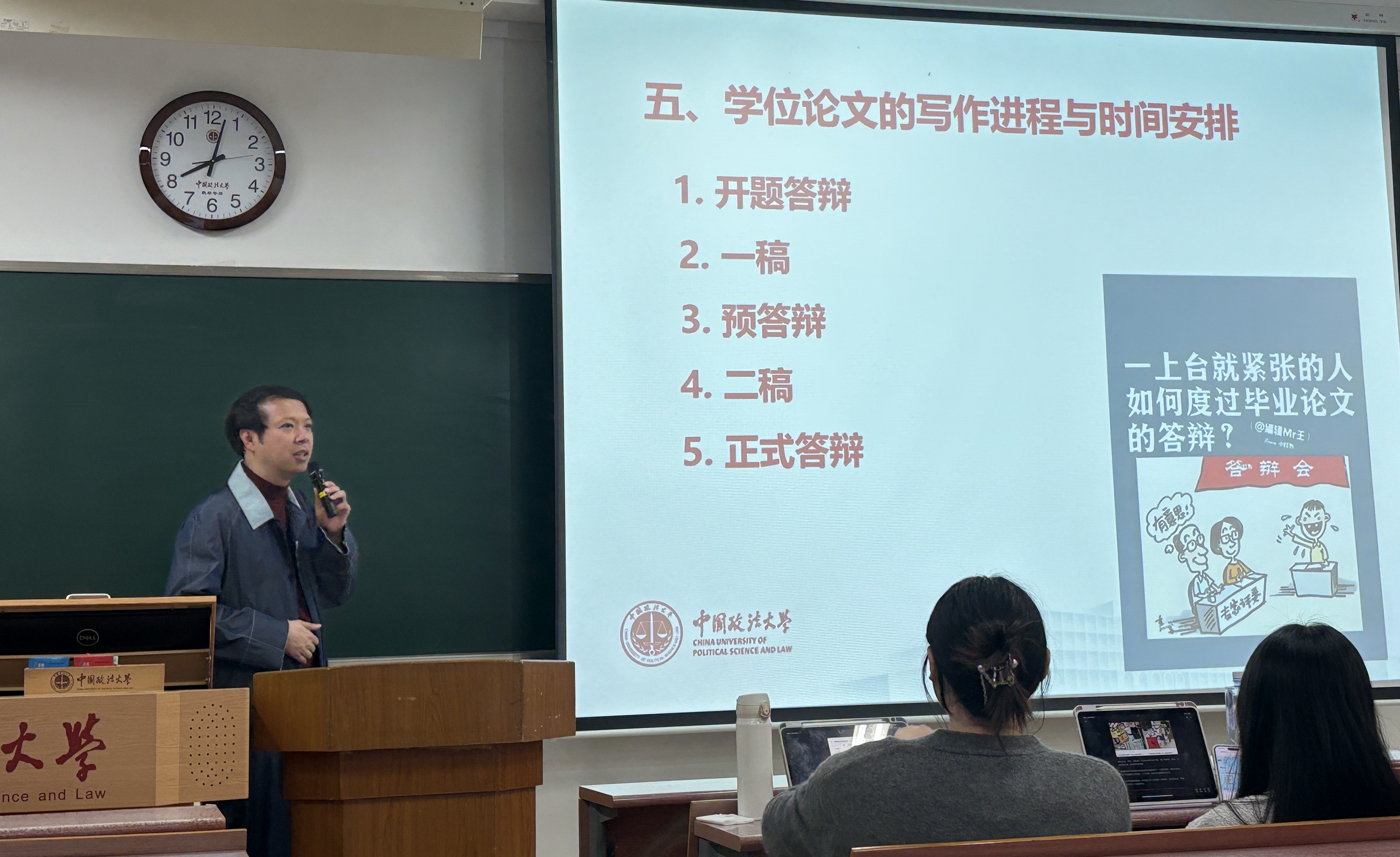 编者按:中欧法学院高度重视研究生教育质量,通过开设《方法论与学位论文写作》课程,加强对硕士学位论文的写作指导,夯实论文写作基础,加强研究生培养过程管理,全面提高研究生培养质量。2025年3月25日,中欧法学院《方法论与学位论文写作》课程在明法楼305教室举行。诉讼法学研究院证据法研究所所长胡思博副教授以“法学硕士学位论文写作”为主题,为研究生讲解学位论文写作要求,梳理论文写作的时间规划。胡思博首先明确了... >>>